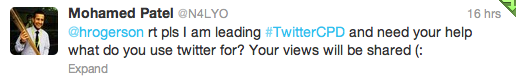 And if I want to give or receive more personal advice I will use the direct message service on twitter to send my email address to another twitter user so we can contact each other directly.